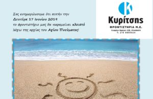 Αργία Αγίου Πνεύματος (17/06/2019)
