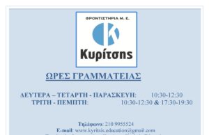 ΦΡΟΝΤΙΣΤΗΡΙΟ “ΚΥΡΙΤΣΗΣ”. ΚΥΠΡΙΩΝ ΗΡΩΩΝ 42,Β ΗΛΙΟΥΠΟΛΗ