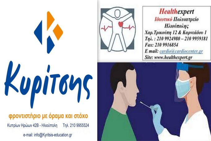 Το Φροντιστήριο «Κυρίτσης» δείχνοντας για ακόμη μία φορά κοινωνική ευαισθησία και αναλογιζόμενο τις δύσκολες υγειονομικές και οικονομικές περιστάσεις , εξασφάλισε αποκλειστικά σε συνεργασία με το Ιδιωτικό Πολυϊατρείο Ηλιούπολης «Healthexpert» (Χαρ.Τρικούπη 12 & Καρνεάδου 1) και προσφέρει για...