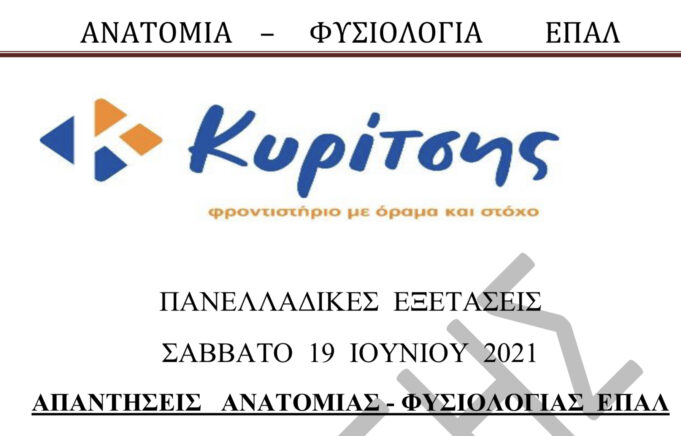 Το Φροντιστήριο Μ.Ε. «ΚΥΡΙΤΣΗΣ», σας παραθέτει τις απαντήσεις στο μάθημα της Ανατομίας - Φυσιολογίας το οποίο εξετάστηκε στις 19/6/2021. Δείτε αναλυτικά στο παρακάτω αρχείο: