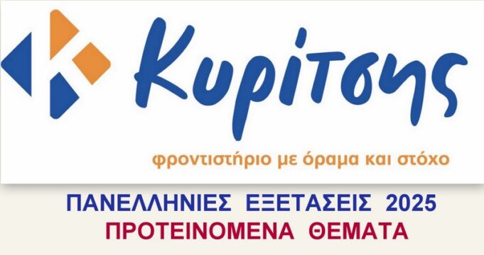 Το Φροντιστήριο Μ.Ε. «Κυρίτσης» δημοσιεύει προτεινόμενα θέματα της Γ´Λυκείου ενόψει των Πανελληνίων Εξετάσεων, που έχει φτιάξει η ομάδα καθηγητών του φροντιστηρίου.