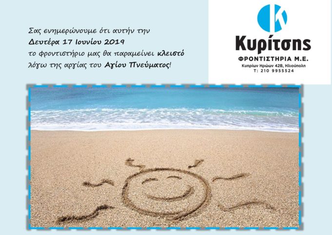 Αργία Αγίου Πνεύματος (17/06/2019)