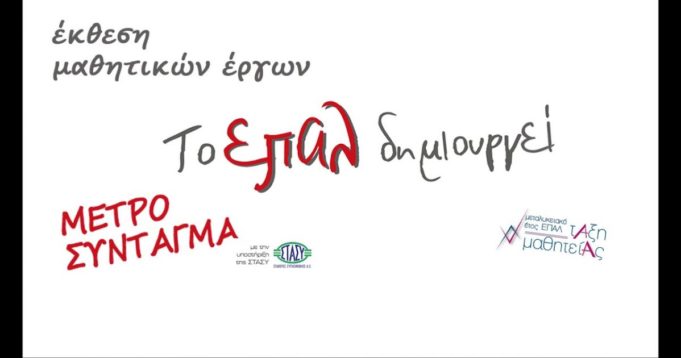 Το Υπουργείο Παιδείας, Έρευνας & Θρησκευμάτων σας προσκαλεί στην Έκθεση – εκδήλωση με τίτλο «Το ΕΠΑΛ δημιουργεί», που διοργανώνει από τις 27 Φεβρουαρίου έως και τις 2 Μαρτίου 2019, στο χώρο (αίθουσα) πολλαπλών χρήσεων του σταθμού Μετρό, στο Σύνταγμα.
